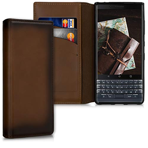 Kalibri Custodia Compatibile con Blackberry KEYtwo Le (Key2 Le) - Cover Slim Vera Pelle Slim con portacarte - Custodia Wallet Pieghevole