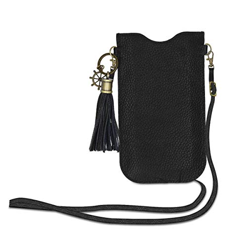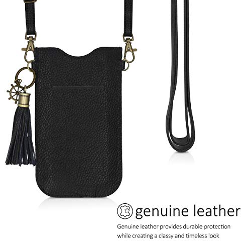 Kalibri Custodia Smartphone Universale in Vera Pelle - Astuccio Porta-cellulare con Tracolla da Appendere - Borsa con Ciondolo e Portacarte - nero