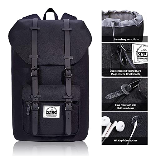 KALIDI - Zaino da donna e uomo con morbido scomparto per laptop, per laptop da 15 pollici, grande zaino per la scuola, per lavoro, università, studenti, gite, Tutto nero