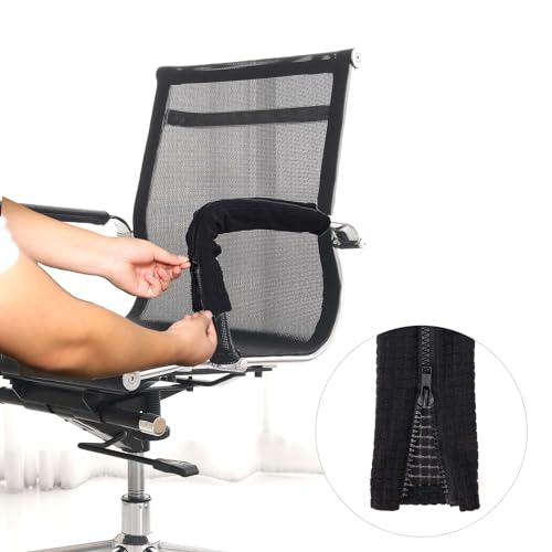 KALIONE 2 federe per braccioli per sedia da ufficio, con chiusura lampo, rimovibili, per sedia da ufficio, colore nero