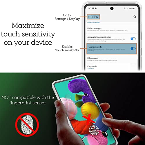SENSIBILE AL TATTO & SENSORE AL DITO - Migliora la sensibilità al tatto modificando le impostazioni dello smartphone quando necessario. ATTENZIONE! La custodia non è compatibile con il sensore dito nel display dello smartphone (nessun cut-out).