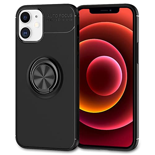 Kaliroo Ring Cover compatibile con IPHONE 12 | IPHONE 12 PRO Custodia, Resistente Copertura Silicone con Anello Girevole Rotazione 360-Gradi, Kickstand Case, Supporto Auto Magnetico, Colore:Nero