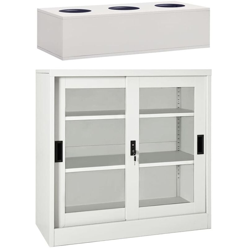 Questo armadio con ante scorrevoli con fioriera è la scelta perfetta per riporre i vostri diversi oggetti e coltivare fiori o piante. L'armadio con fioriera è realizzato in acciaio, il che lo rende robusto e stabile oltre che facile da pulire. Dispone di 2 ripiani regolabili e di un lucchetto, che offrono ampio spazio di archiviazione per tenere in ordine e a portata di mano i vostri DVD, apparecchi multimediali, libri e piccoli oggetti essenziali. Gli armadi con ante scorrevoli sono adatti per ambienti con poco spazio o piccoli corridoi, in cui non è possibile utilizzare armadi con ante battenti. Inoltre, la fioriera può ospitare un numero considerevole di piante e fiori verdi, quindi perfetta per diversi spazi. Il suo design moderno sarà un'ottima aggiunta decorativa a qualsiasi stanza o spazio ufficio. Colore: Grigio chiaro Materiale: Acciaio, vetro temperato Dimensioni complessive: 90 x 40 x 113 cm (L x P x A) Armadio con ante scorrevoli: Dimensioni: 90 x 40 x 90 cm (L x P x A)