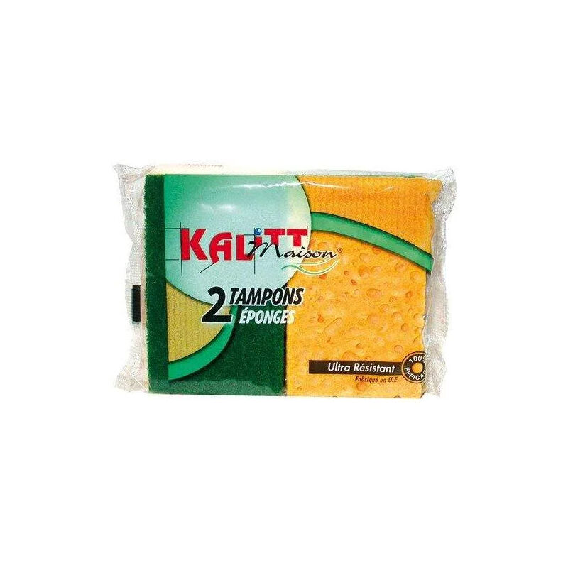 Set di 2 spugne - La morbidezza assorbente di una spugna vegetale da un lato e una parte raschiante a grana molto fine dall'altro. - Spugne ultraresistenti - Dimensioni 11 x 7 x 2 cm