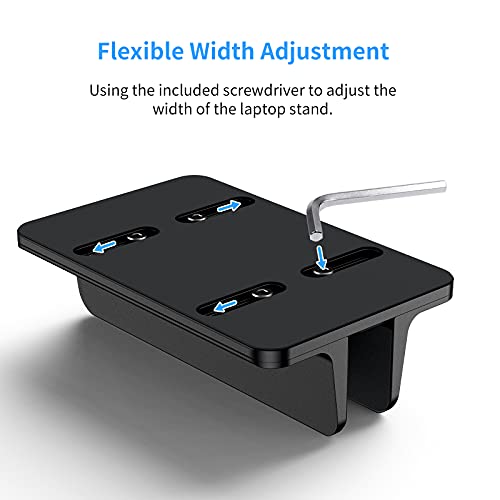 ★ 【Larghezza regolabile】: il supporto tablet è adatto per la larghezza regolabile di laptop con spessore da 11 mm (0,43 pollici) a 65 mm (2,56 pollici). Puoi regolare la vite sul lato inferiore del laptop stand con la chiave a brugola inclusa e regolarla alla larghezza più adatta per il tuo laptop.