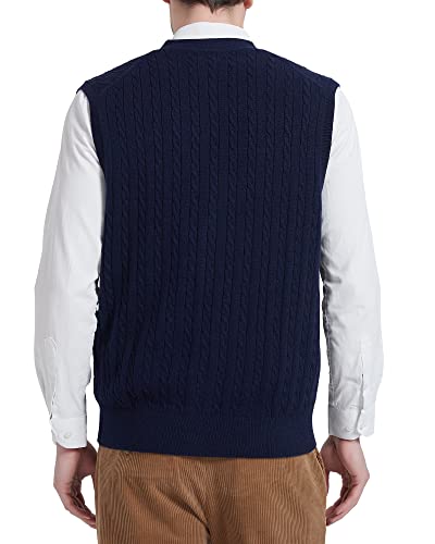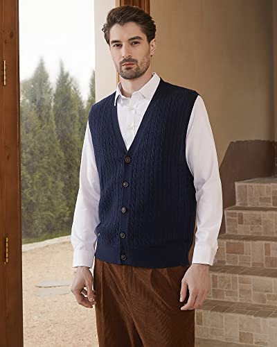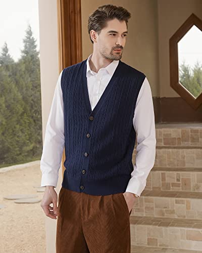 Kallspin Maglione Cardigan da Uomo con Scollo a V e Lavorazione a Cavo con Bottoni in Misto Lana(Blu Navy,2XL)