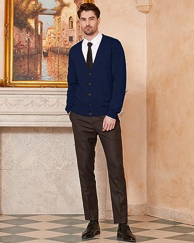 Kallspin Maglione da Uomo Cardigan con Scollo a V in Lana(Blu Navy,L)