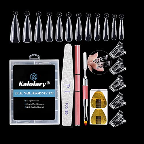 Kalolary 120pcs Nail Dual Forms Stiletto Nail Mold Kit con 5pcs Clip trasparente per unghie, 50pcs Guida Unghie Forme Lima per unghie e pennello Poly uv gel a doppia estremità