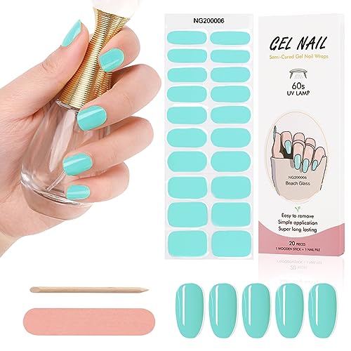 Kalolary 20PCS Strisce per smalto gel per unghie, Verde Chiaro Adesivi per smalto per unghie Full Wraps Lampada UV / LED Adesivi per unghie in gel curati con Lima per unghie e Stick - F