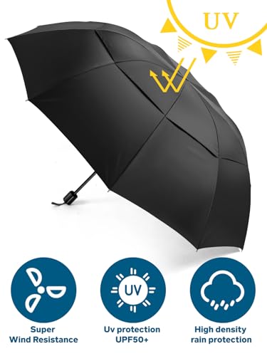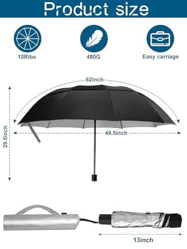 【62 pollici oversize】 L'ombrello pieghevole da 62 pollici combina le migliori caratteristiche sia di ombrelli compatti che da golf, che è abbastanza enorme per 3-4 persone ma abbastanza piccole quando si piega, super portatile e facile da trasportare. Realizzato in tessuto Pongee da 210 t ad alto contenuto idrico, non sarà immerso facilmente e può asciugare rapidamente.