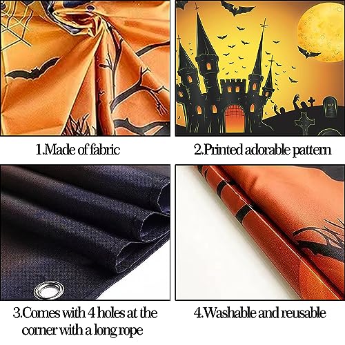Adatto per interni ed esterni: il nostro striscione può essere applicato su case, pareti, cortili, paletti telefonici, alberi, mai, terrazze, verande, soggiorni, recinzioni o altri oggetti all'interno e all'esterno. Brilla alla tua festa di Halloween e cattura i tuoi momenti importanti!