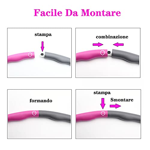 Kalvvn Hula Hoop, Hula Hoop Adulti Fitness per Design Staccabile a 8 sezioni, per Fitness Sport casa Ufficio modellatura (Rosa + Grigio)
