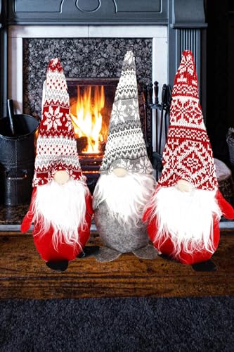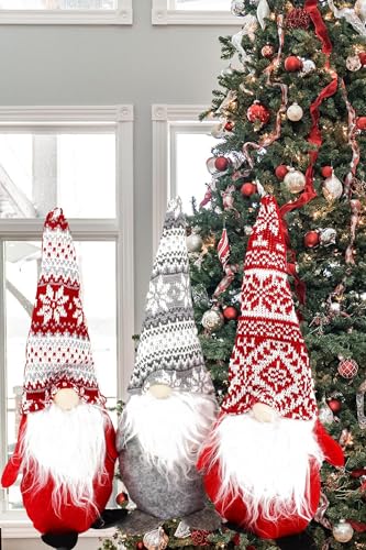 KAMACA - Set di 3 gnomi con barba, figure decorative natalizie (set di 3 gnomi, colore: rosso, grigio e rosso)