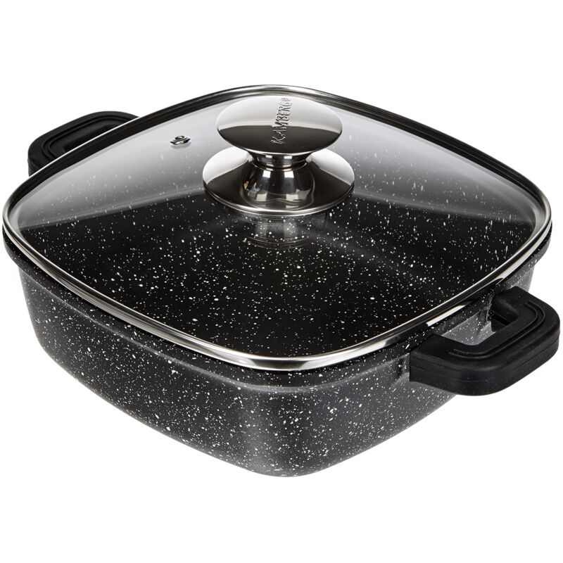 Casseruola quadrata Kamberg con dimensioni 20 x 20 cm in fusione di alluminio, senza PFOA. Casseruola quadrata Kamberg dotata di un rivestimento antiaderente in pietra ad alte prestazioni che permette di conservare il gusto autentico degli alimenti, senza dover aggiungere grassi. La fusione di alluminio ti garantisce una resistenza di lunga durata e l'indeformabilità. La collezione Kamberg è certificata per tutti i tipi di piani cottura: induzione, gas, ardesia, piastre elettriche e vetroceramica. Questa casseruola quadrata Kamberg, dotata di un paio di presine in silicone, semplifica il lavaggio e ti protegge dal calore. Questa collezione è lavabile in lavastoviglie.