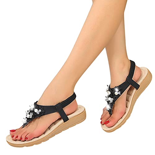 KAMEIMEI Sandali estivi da donna, con zeppa piatta, eleganti e aperti, con cinturino alla caviglia, sandali con cinturino alla caviglia, sandali infradito, Nero, 46