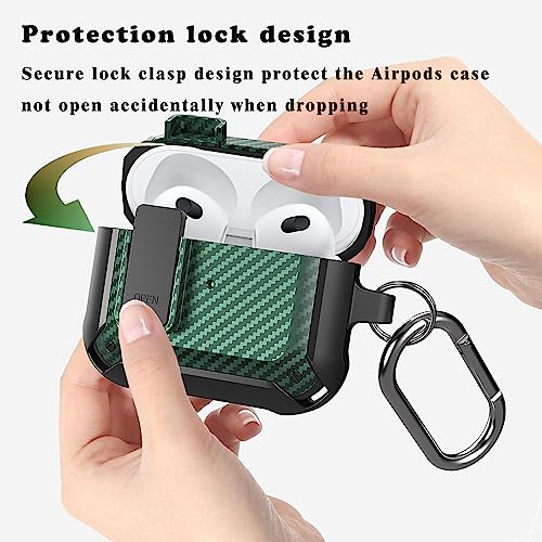 KAMINRUN AirPods 3rd Generation Case with Automatic Secure Lock Clip, Full Body Armor Protective Hard TPU Case Cover compatibile con Airpods 3 2021 Charging Case with Carbon Fiber Keychain Blackblue