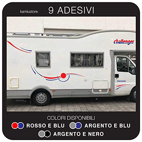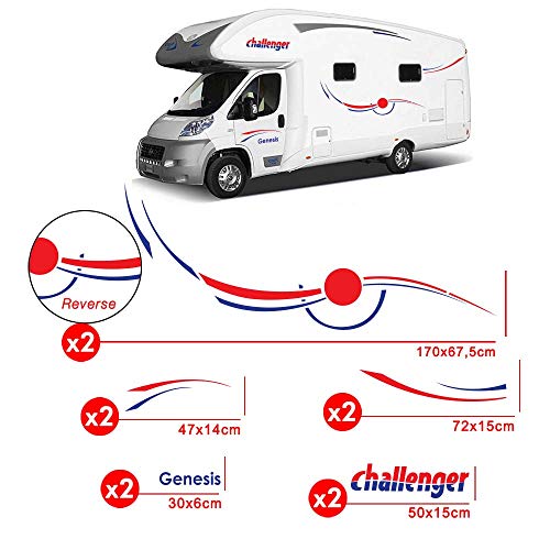 Kamiustore Adesivo Challenger Genesis per Camper in Vinile prespaziato - Kit 9 Adesivi componibili (Argento/Nero)