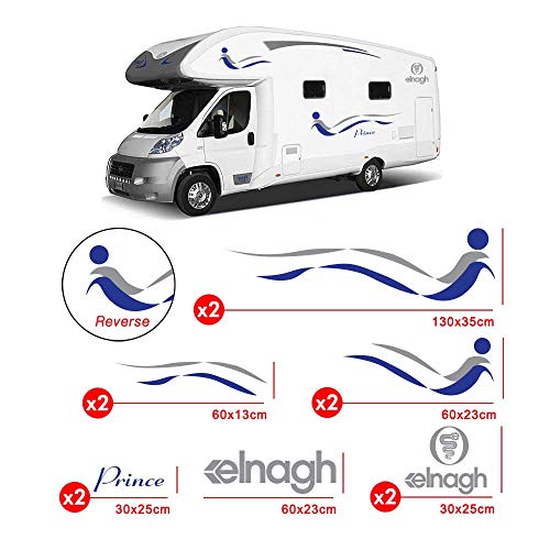 Kamiustore Adesivo Elnagh Prince per Camper in Vinile prespaziato - Kit 11 Adesivi componibili (Nero/Argento)