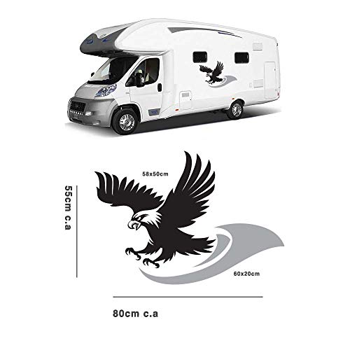 Kamiustore Adesivo Flying Eagle per Camper, roulotte, Van e Barche in Vinile - 1 Adesivo 80x55cm (Nero/Argento)