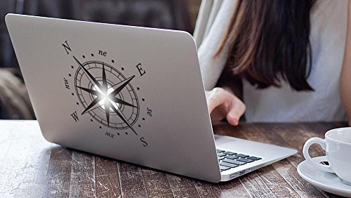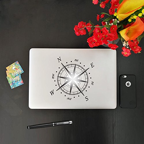 Kamiustore Adesivo per MacBook Notebook Pc Portatile Modello Rosa dei Venti Sticker in Vinile prespaziato (Nero)