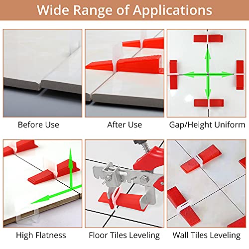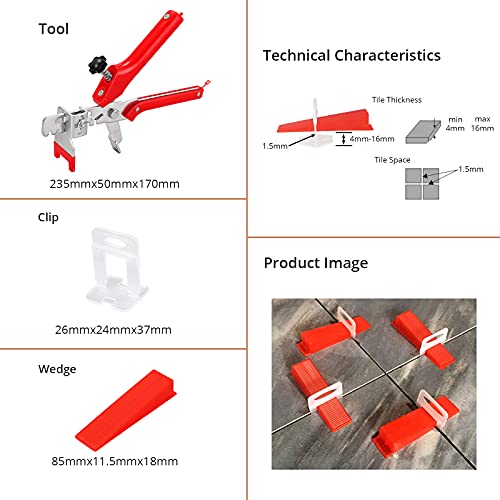 Kamtop 201pz Utensili Livellamento Piastrelle 4-16MM Strumenti di Livellamento per Piastrelle - 1 Pinza Pavimento 100 Distanziatori Livellanti 100 Cunei per Piastrelle Sistema per Piastrella - Rosso