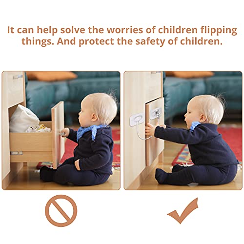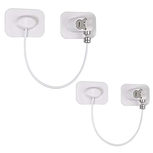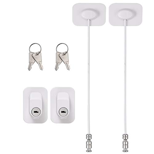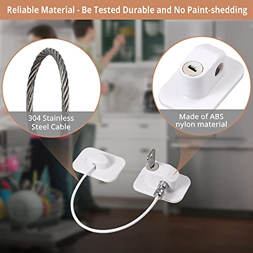 Kamtop Cavo Limitatore Apertura per Porta Frigo Cassetto con Chiavi Serratture con Cavo 18CM Blocca Finstre Scorrevoli Porte Frigorifero Armadietto per Sicurezza Bambini (2PZ, Bianco Rettangolo)
