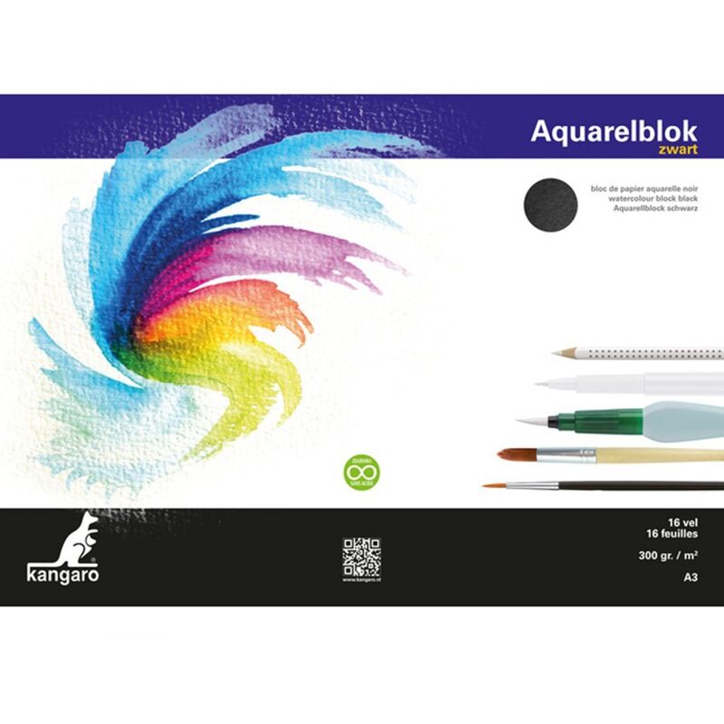 Blocco per acquerello Kangaro K-5313La carta è ideale per acquerello, acrilico, inchiostro, matita, tempera e carboncinoIncollato su tre latiCarta da 300 grammi16 fogliFormato: A3Carta priva di acidi