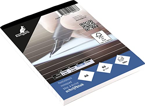 Kangaro K-5506 - Blocco note formato A6, a righe, 60 g, 100 fogli, 10,5 x 14,8 x 0,9 cm, colore: Bianco
