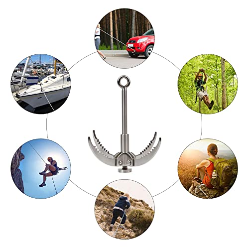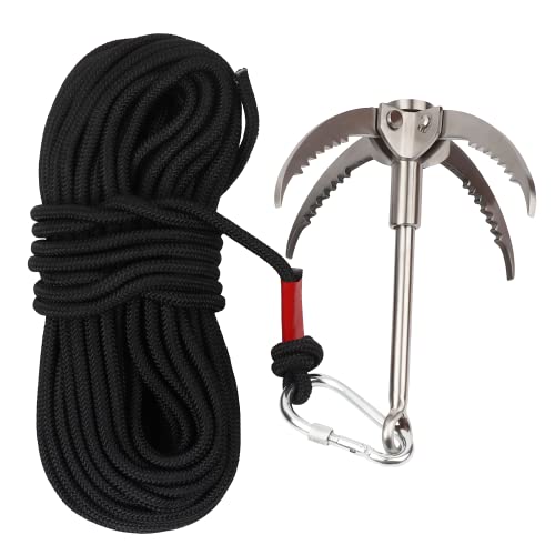 Kangmeile Arrampicata - Rampino 400 kg Artiglio di Sopravvivenza in Acciaio Inossidabile Gancio a gravità Folle con Corda da Arrampicata ausiliaria da 20 m per Arrampicata all'aperto Salvataggio