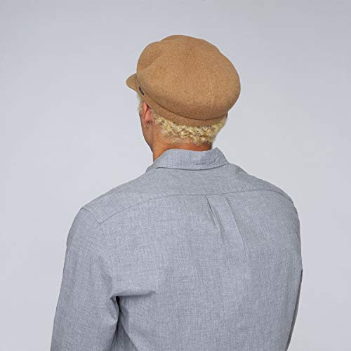 Il campo di lana ha una forma a testa quadrata che ha un paralume corto e un filetto intorno alla base della corona. La struttura senza cuciture, lavorata a maglia e bloccata è una vera innovazione e lana è il materiale originale in cui il Kangol ha costruito il suo nome.