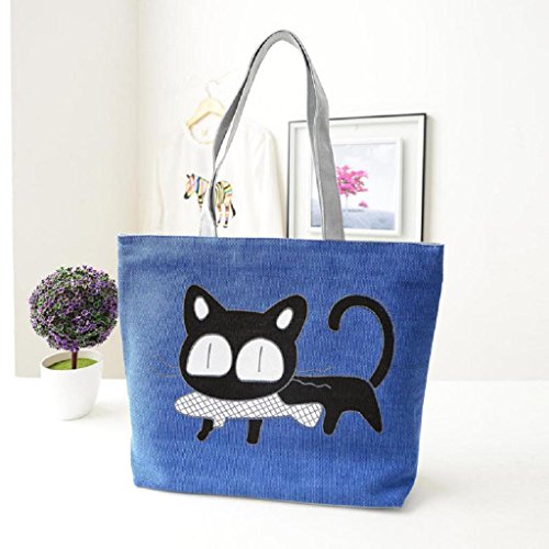 Kangrunmy Nuova borsa shopping bag in canvas abbigliamento tendenza (Blu)