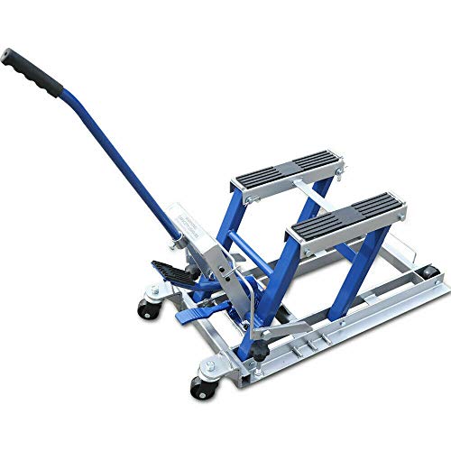 Kangten Ponte sollevatore per moto idraulico, supporto di montaggio per moto e moto, pieghevole, portata massima 680 kg, blu per hobby e officina
