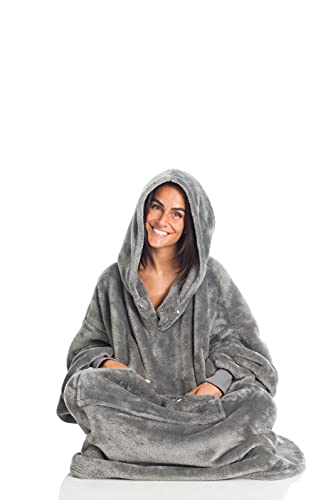 HOODIE: coperta con cappuccio, indossabile come un felpone. La misura 95x95 cm la rende adatta a ragazzi ed adulti. Una volta indossata, ci terrà caldo e ci permetterà di muoverci liberamente in giro per casa. Color grigio, elegante e sempre facile da abbinare. Ideale per studiare, leggere, lavorare, bere un té, giocare ai videogames, guardare la TV. Utile anche da portare con sé in viaggio, in campeggio, allo stadio, ad un concerto, in montagna, al mare, ad un pigiama party o anche solo da usare in balcone o veranda