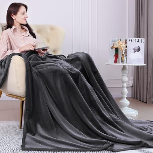 KANKAEU Coperta Pile 230x270 cm, 380GSM Plaid di Lana Super Morbida e Delicata, Plaid Pile, Coperta Pile Singolo, Coperta Come Coperta Divano, Coperta di Flanella, Plaid Divano, Antracite