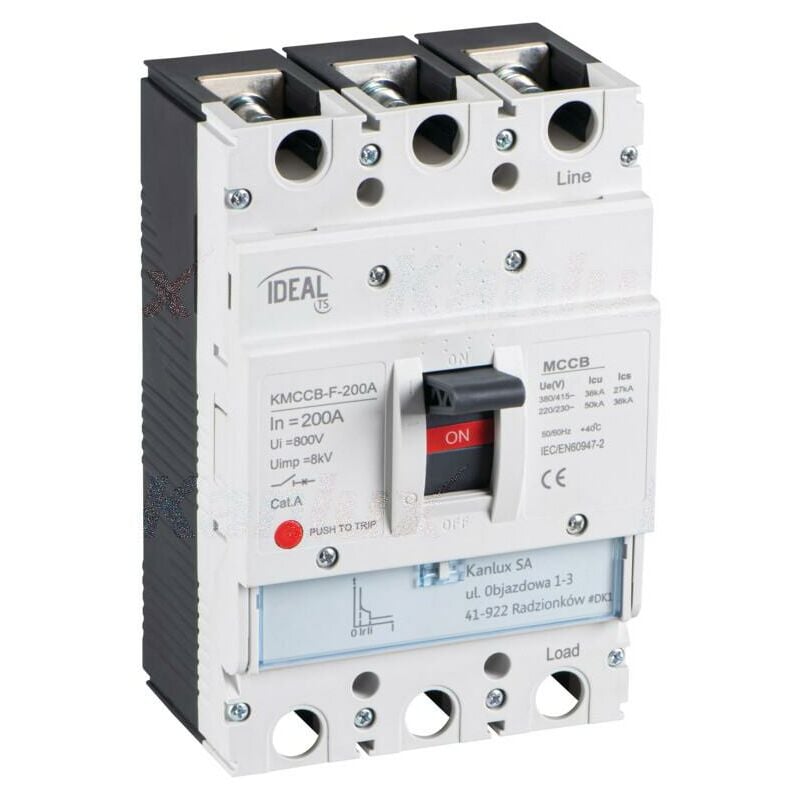 WY CZNIK KMCCB-F-200A - Kanlux SKU: 36291 Caratteristiche del prodotto . Trovaci su: Specifiche tecniche: Informazioni di base =:EAN13=5905339362919: Peso e dimensioni =:Peso=1654g:Unit di vendita=produkt.:Scatola collettiva=12: Dati tecnici =:Frequenza nominale Hz =50:Tensione nominale di impiego Ue V =380/415 220/230:Tensione nominale d isolamento Ui V =800:Tensione nominale di tenuta a impulso Uimp V =8000:Tipo di allacciamento=morsettiera~:Grado IP=20~:Categoria d'uso=A~:Tipo di comando=mechaniczne~:Luogo di montaggio=płyta montażowa~:Corrente nominale [A]=200~:Applicazione=3~: Cataloghi, dépliant e i volantini = ~