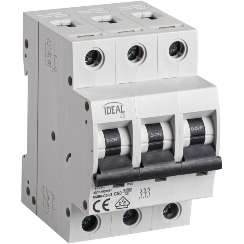 Interruttore magnetotermicodifferenziale 3P KMB6-C50/3 - Kanlux SKU: 23169 Caratteristiche del prodotto .Interruttore con la protezione da sovracorrente atto a proteggere cavi contro sovraccarichi e corto circuiti negli impianti e nei dispositivi. Specifiche tecniche: Informazioni di base =:EAN13=5905339231697:Colore=bianco: Peso e dimensioni =:Peso=300g:Unit di vendita=pezzo:Scatola collettiva=4: Dati tecnici =:Tensione nominale V =230/400 AC:Frequenza nominale [Hz]=50/60~:Corrente nominale [A]=50~:Corrente nominale di cortocircuito [A]=6000~:Propriet? di rilascio=C~:Classe di limitazione energetica=3~:Colore=bianco~:Moduli=3, 3~:Applicazione=3~:Grado IP=20~:Sezioni dei cavi usati [mm]=1÷25~:Temperatura esercizio [°C]=5÷40~:Luogo di montaggio=per binario TH35~:Norm=PN-EN 60898-1, PN-EN 60898-1~: Specificazione = ~:Carta tecnica=PDF, Dimensione: 208.15 KB~: Attestazioni e certificazioni = ~:Dichiarazione di conformità=PDF, Dimensione: 919.79 KB~: Cataloghi