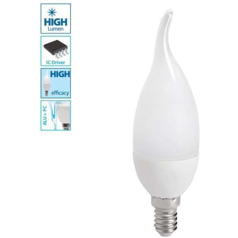 E14 6,5W lampadina LED nel colpo di vento a forma di fiamma. Illuminazione equivalente a 50W, 600 lumen. Dimensioni C37: diametro 38mm, altezza 133mm. Marca Kanlux, accensione immediata. Ombrello chiaro: bianco naturale 4000K. 4000K 6W 50W 600 210° Questa lampadina LED di marca Kanlux è dotato di un tappo E14: piccolo tappo a vite 14mm. Sostituisce direttamente tutte le tue lampadine E14. La forma è di tipo fiamma 38mm con un diffusore in vetro depoliticizzato (bianco). La lampadina consuma 6.5W e restituisce una luce equivalente a 50W. La luce è diffusa ad un ampio angolo di 210°. Principali caratteristiche tecniche della lampada Consumo elettrico di soli 6.5W per una luce equivalente a 50W Durata: 20.000 ore 15 000 ciclo/stop Categoria di energia A+ Driver IC alta qualità 600 lumen IRC ✱ 80 Illuminazione istantanea Fabbricazione di alluminio e policarbonato Illuminazione a 210° Installazione standard su tutti gli assi E14 (vis 14mm) Dimensioni totali: 38mm*133m m 92 lumen per watt
