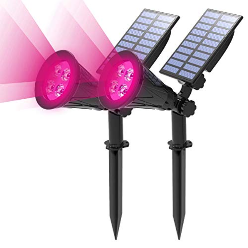 Kansas Faretto da giardino a energia solare, 2 pezzi, 4 LED, 2 modalità di illuminazione, grande luce esterna per prato, vialetto, vialetto (rosa)