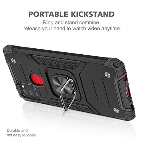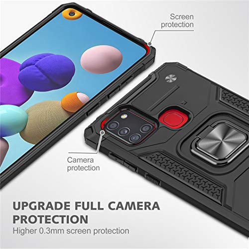 KANSi Cover compatibile per Samsung Galaxy A21S, Vetro Temperato [2 Pack] Custodie Silicone TPU 360° Rotante Anello Magnetica Anello Ring Supporto Bumper per Samsung A21S - Nero