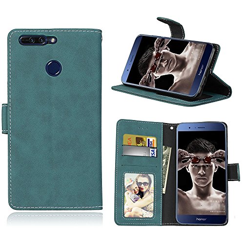 KANTAS Portafoglio Protettiva Custodia in pelle per Huawei Honor 8 Pro, Texture Opaca Matte Flip Cover PU Leather Cover Magnetico Supporto Stand Carta Fessura e Protettiva Flip Wallet Case Libro Cover per Huawei Honor 8 Pro -- Blu