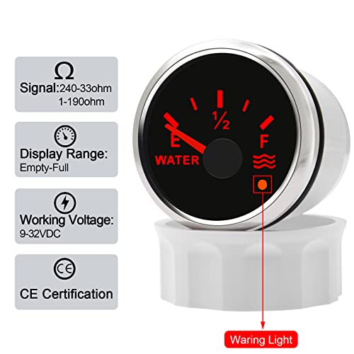 Diametro di installazione: Φ 52 mm o 2-1/16". Range di indicazione: E-1/2-F (E significa vuoto, 1/2 significa mezzo acqua, F significa acqua piena.