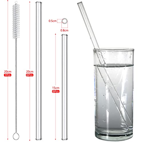KAONESS Cannuccia di Vetro Riutilizzabile a Prova di Esplosione Ambientale Sicuro Cannuccia Dritta Trasparente per Cocktail e Succhi con 1 Spazzola per la Pulizia (6PCS 20mm+6PCS 15mm)