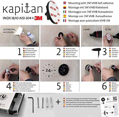 Kapitan Gancio doppio per asciugamano, gancio per asciugamani, gancio appendiabiti in acciaio inox spazzolato, nastro adesivo 3M VHB senza foratura, montaggio a parete
