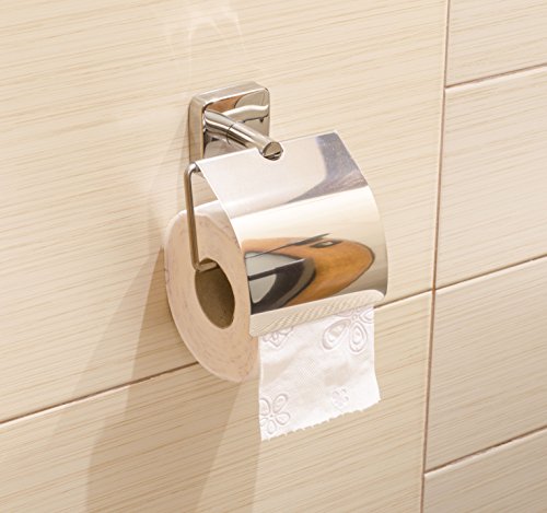 Kapitan Quattro Portarotolo con Coperchio, 18/10 Acciaio Inossidabile, Forma Quadrata, 3M VHB adesivo, Montaggio a Parete, Fabbricato in EU, 20 anni di garanzia