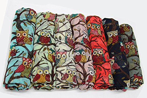 Kapmore Sciarpa per Donne Moda Gufo Stampato Voile Foulard Soft Beach Scialle
