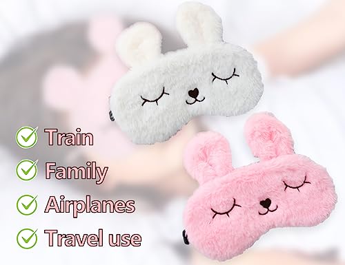 KAPSING 2 pezzi Maschera per occhi per dormire, benda per dormire, maschera per dormire per bambini e bambine, maschera per dormire con animali carini 3D, paraluce traspirante (bianco e rosa)