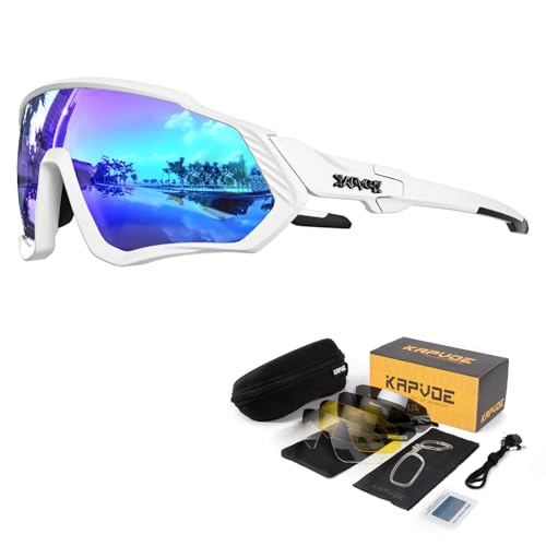 KAPVOE Occhiali da ciclismo polarizzati con 5 lenti intercambiabili,occhiali da sole sportivi per uomini e donne,ideali per ciclismo su strada,mountain bike,corsa,pesca,canottaggio,golf 07
