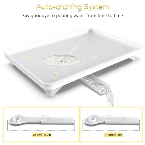 【Vassoio di drenaggio automatico】Non è necessario versare acqua ogni giorno e mantenere il bancone asciutto. Grazie alla bocca estensibile e girevole a 360°, il rack può convogliare facilmente l'acqua nel lavello. Puoi posizionare lo scolapiatti su qualsiasi lato del lavello.