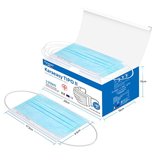 KARAEASY Mascherine chirurgiche Certificate Dispositivo Medico Tipo II BFE 98% Certificate Mascherina Box 100 Pezzi Colorate