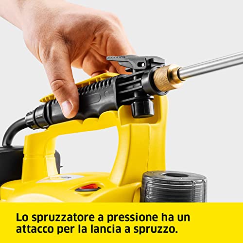 Pressione costante: grazie alla pompa elettrica lo spruzzatore a pressione Kärcher raggiunge una pressione fino a 3 bar, che viene mantenuta costante per garantire un funzionamento sempre efficiente